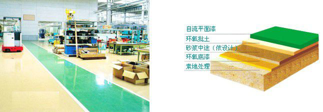 b、環氧自流平地坪(無塵車間、對廠房凈化要求比較高工業生產區域)。